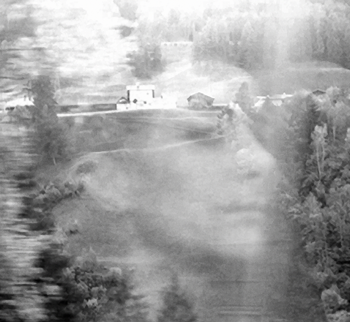 The syncope of the syllable “vi” within the word “movimento” (movement) gives rise to the word “momento” (moment). The images of the «-vi-» series are considered in analogy with the lost syllable: mo-vi-mento. They are frames taken from footages of road trips, yet having no intent to representing moments of those trips. A reflected portrait on the train window overlaps the passing landscape and somehow alludes to stories that never happened.